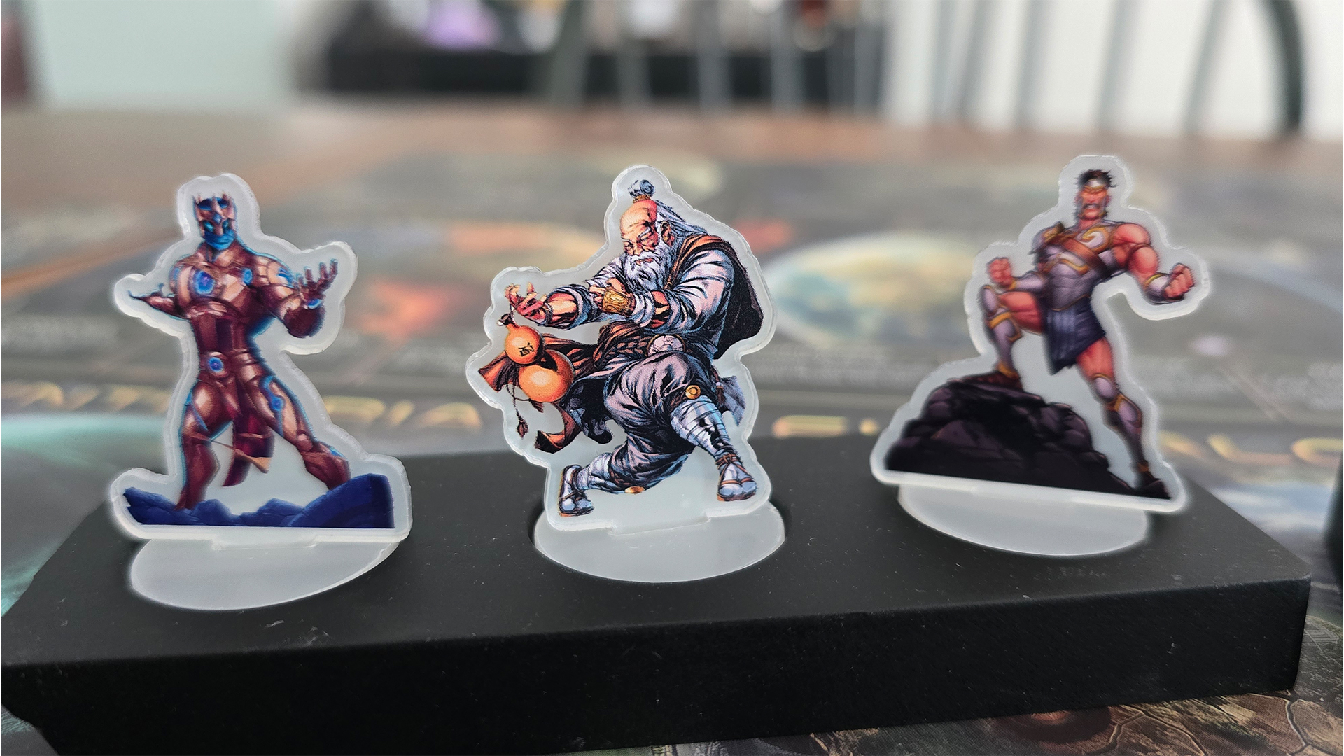 You never split up your team or drop off single heroes on different planets. When one contender “dies,” they immediately come back to life, and the trays or standees seem to exist simply for aesthetics. I’d love to see mechanics that allow individual contenders to hold planets or give a strategic reason for moving them around. Otherwise, a simple plastic token could serve the same purpose and save space, especially compared to 18+ miniatures. That said, the back of the rulebook promises additional game modes in the final release, so perhaps one of those will give them more purpose.