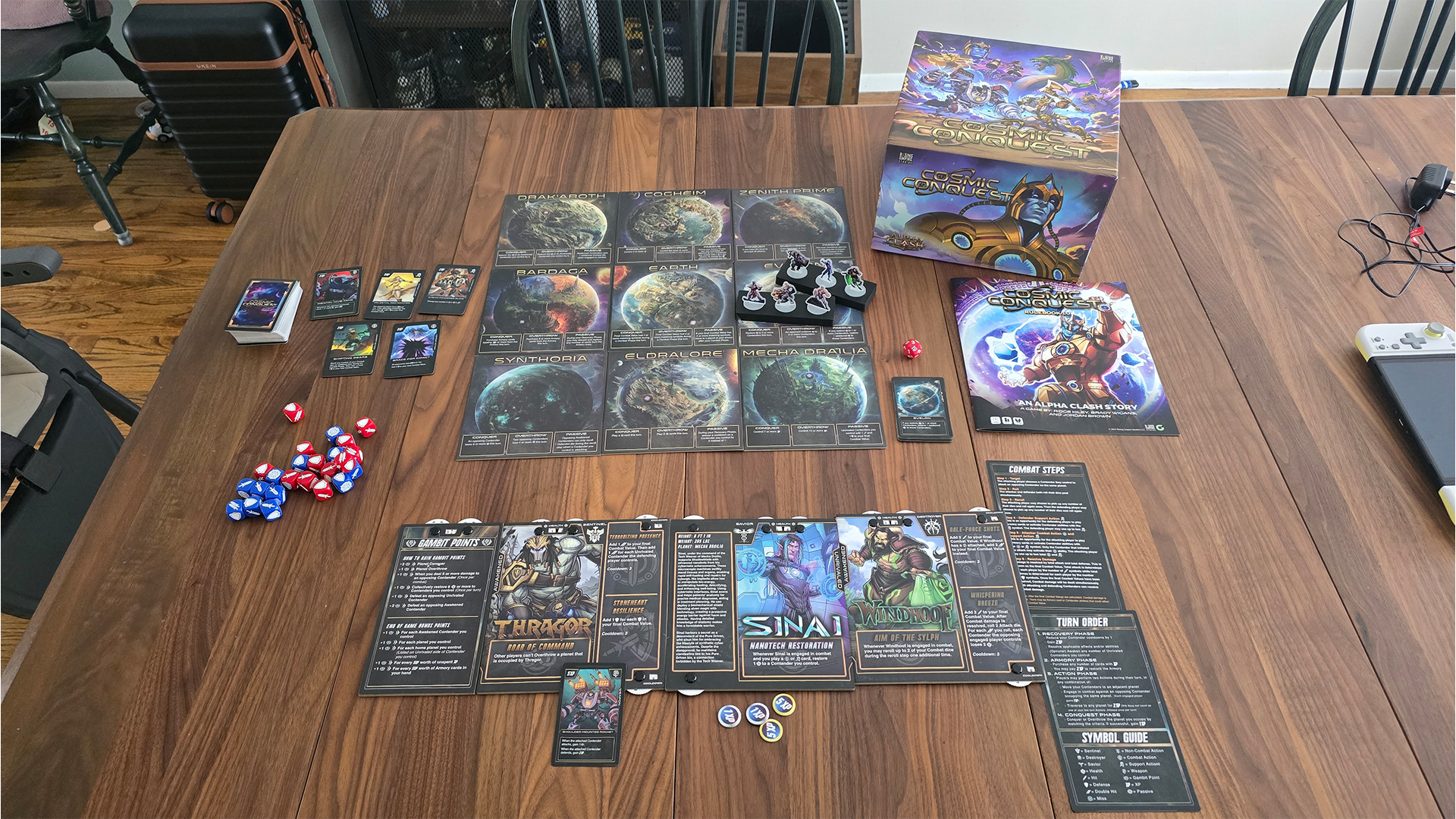 Alpha Clash: Cosmic Conquest—even in its prototype phase—is a game I’d happily reach for during a game night with my crew. It’s perfect for when we just want to have some drinks and roll dice. While it relies heavily on luck, there’s still enough depth—thanks to the variety of heroes and planets—that I found myself wanting to set it back up immediately. I look forward to seeing what the final ruleset offers, from additional game modes to tweaks to contender death and maybe even more planets for variety. Overall, I think Rising Empire Studios has a solid skirmish game on its hands that expands the Alpha Clash property in an exciting new way.