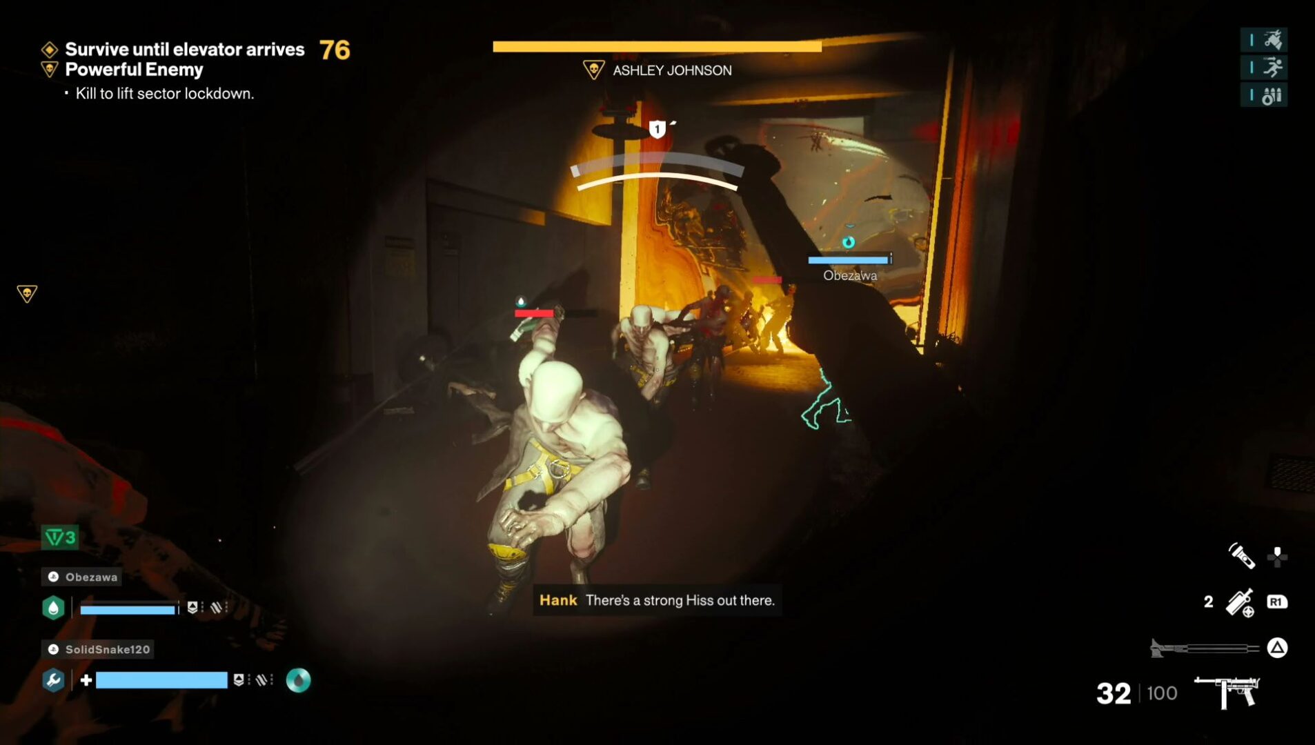 To tackle these missions, players have the choice between three classes, or “kits”, that determine their primary role during the mission: Fix Kit is good at fixing broken down equipment with his hammer and deploying a turret to deal with the enemy mobs; Jump Kit is about recharging devices and shocking wet enemies; and the Splash kit could be thought of as the hearler/support role, rinsing off hazardous ailments from team-mates and soaking enemies so they can be electrocuted. Each kit has its unique tool, and eventually, a unique tool and a powerful ultimate ability, once you purchase it from the requisition shop. Still, outside of those three kit-specific items, anyone can equip any weapon or perk, so long as you have them unlocked.
