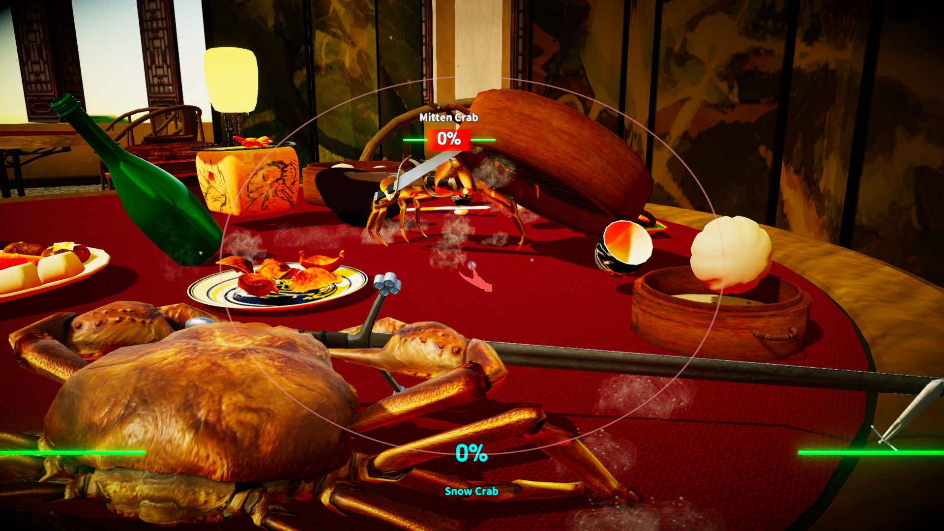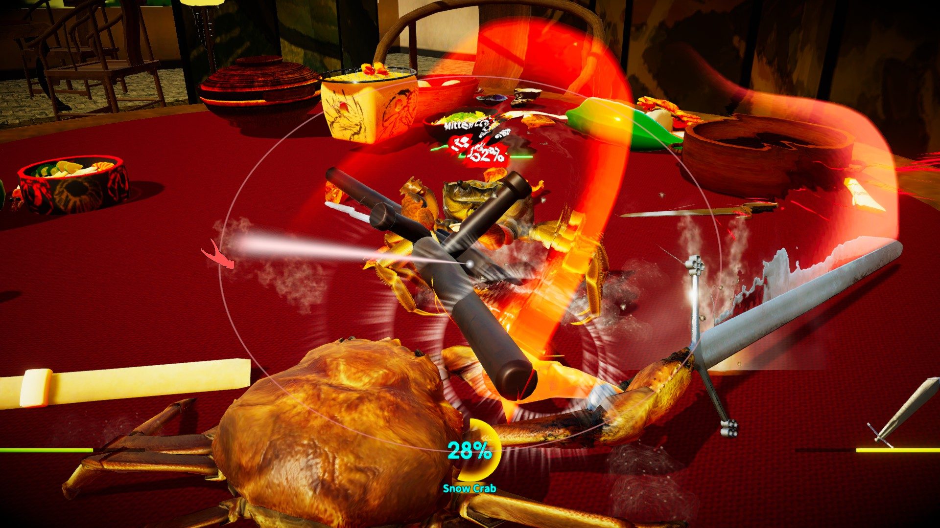 On mouse and keyboard, rotating your crab (and thus also the camera) is done by dragging your mouse cursor to one side of a circular zone around your view. It’s awkward and never feels fast enough for what you want it to do. Moving your shelled-fighter is done with your typical WASD keys, with double-tapping allowing you to do a sort of dash in that direction. Each of your claws is controlled with the left and rice mouse buttons, so when all the controls are put together, you will often look and feel like you are just waggling the mouse back and forth as you furiously mash your mouse buttons. In single-player, especially the earlier stages, this tends to be good enough to flip your foes and claim victory.
