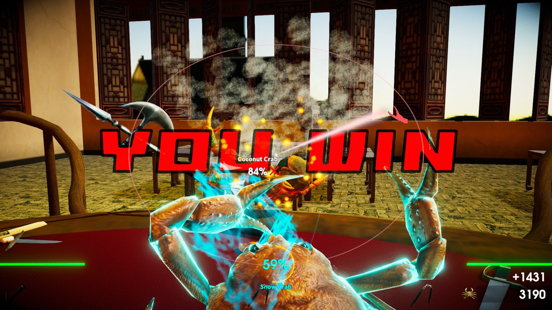 Each win will net the resources that will allow you to go into the store to unlock new fighting crabs, weapons, or boosting your crab’s stats that you can then take into the campaign mode. In very Souls-like fashion, you have a single resource to spend on all of those options, so choose wisely.
