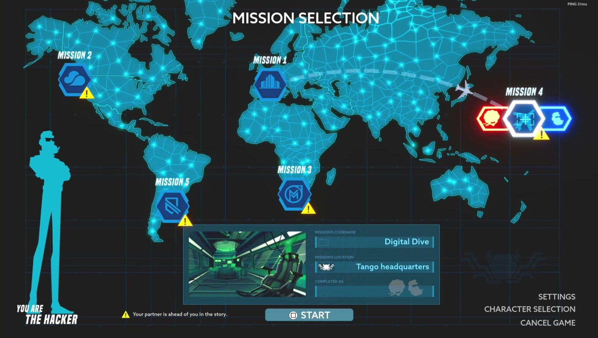 I was pleasantly surprised with how much care was put into making both players’ experiences unique. Playing as the hacker and seeing your agent walking around on the security cameras and sending them secret messages is neat while exploring the environments to find little easter eggs or knick-knacks up as the agent gives you a better look at the world of Operation: Tango.The puzzles and tasks also provide just enough challenge to cause you and your friend to have to work together while not being overly aggravating, and coming up with ways to describe to the other player what you need them to do is part of the fun. And if you do fail a task, you are quickly back in the action, but if you are having issues, you can use a handy “hints” option to help you through.