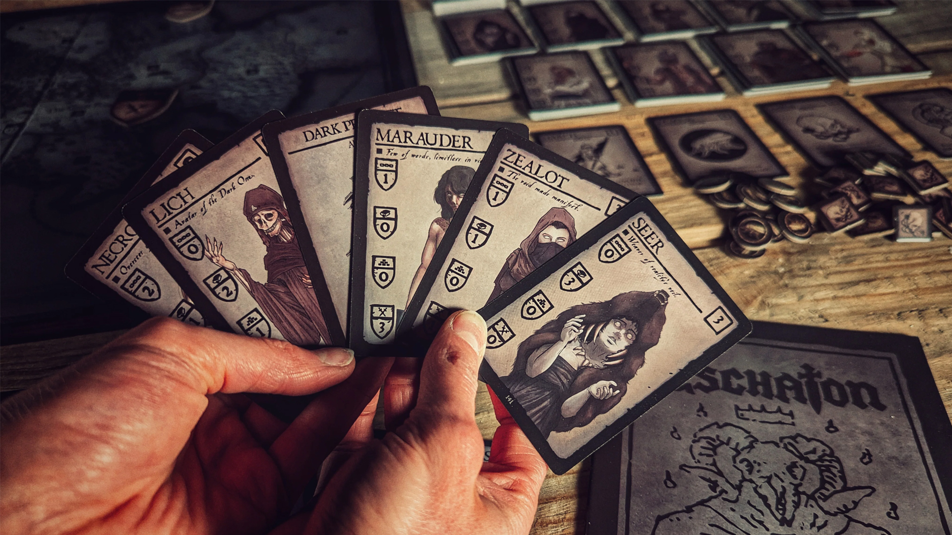 With fall approaching, I’ve been in the mood for something a little darker. I finally got to try Eschaton by Archon Games—a deck-building, area-control game where players command cults vying for power as Armageddon looms. The dark, gothic imagery and straightforward mechanics drew me in, even though I couldn’t finish the demo due to a scheduling conflict. If you’re looking for a thematic game for Halloween, give Eschaton a try—it ships in October and is available for pre-order now.