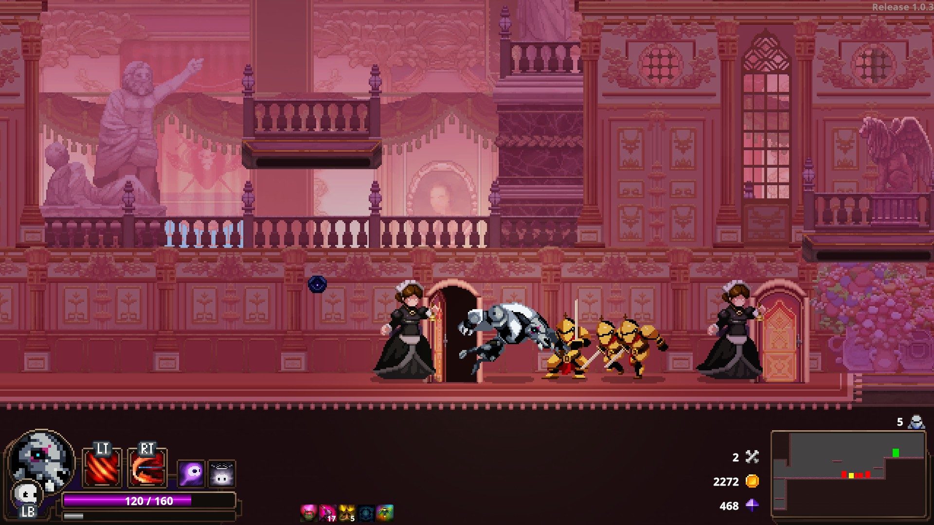 Skul throws a lot of options at you, with no way to truly feel informed about any decision you’re about to make without having put 10 hours in first. Every run feels like you’re starting completely from scratch, the vacuous maw of roguelike algorithm stands open in front you, begging you to run into the darkness with no way to influence or affect it at all. As much as the moment-to-moment side scrolling action feels truly inspired, the RPG stuff feels terminally old school.