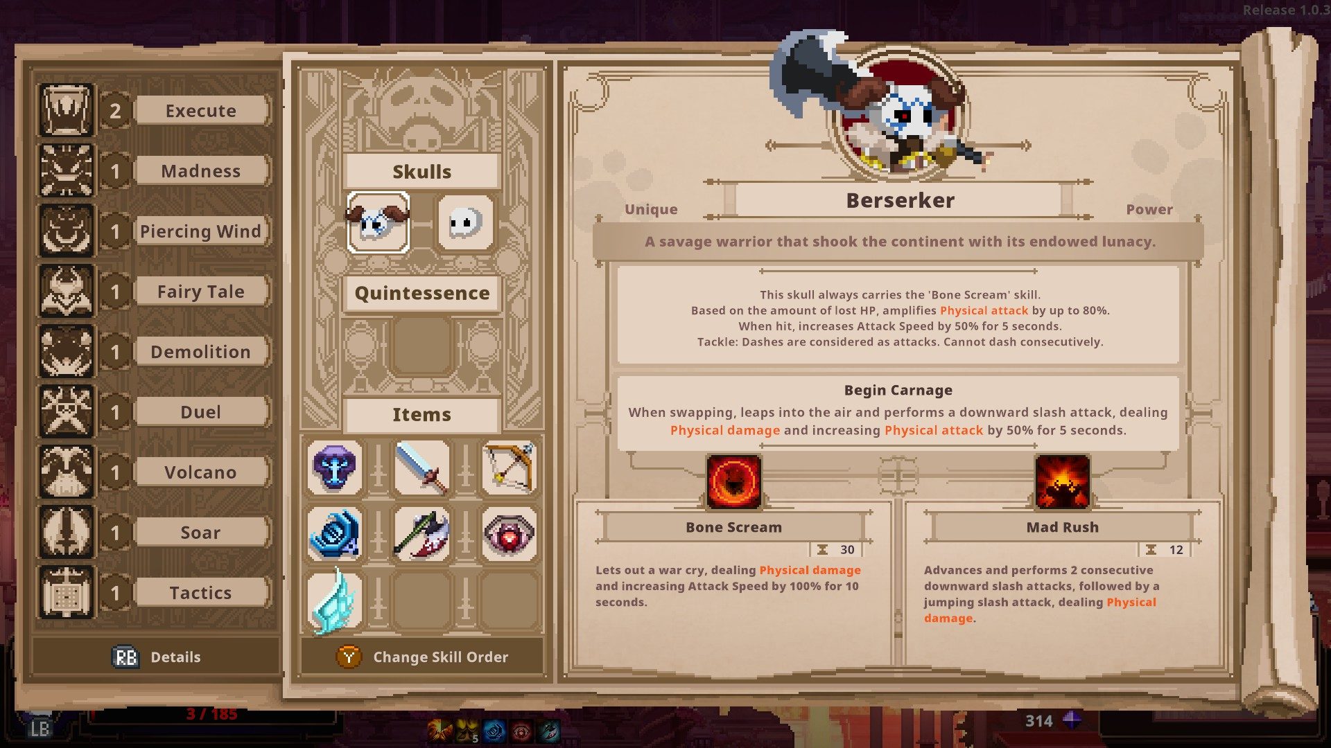 With Skul, I fear that the gambling will stop being fun right around when I finally put the final boss to rest. I’m having a great time with the game right now. By this twinge of frustration I feel every time I look at pamphlets worth of text to determine what abilities do and don’t matter loom large over my future with it.