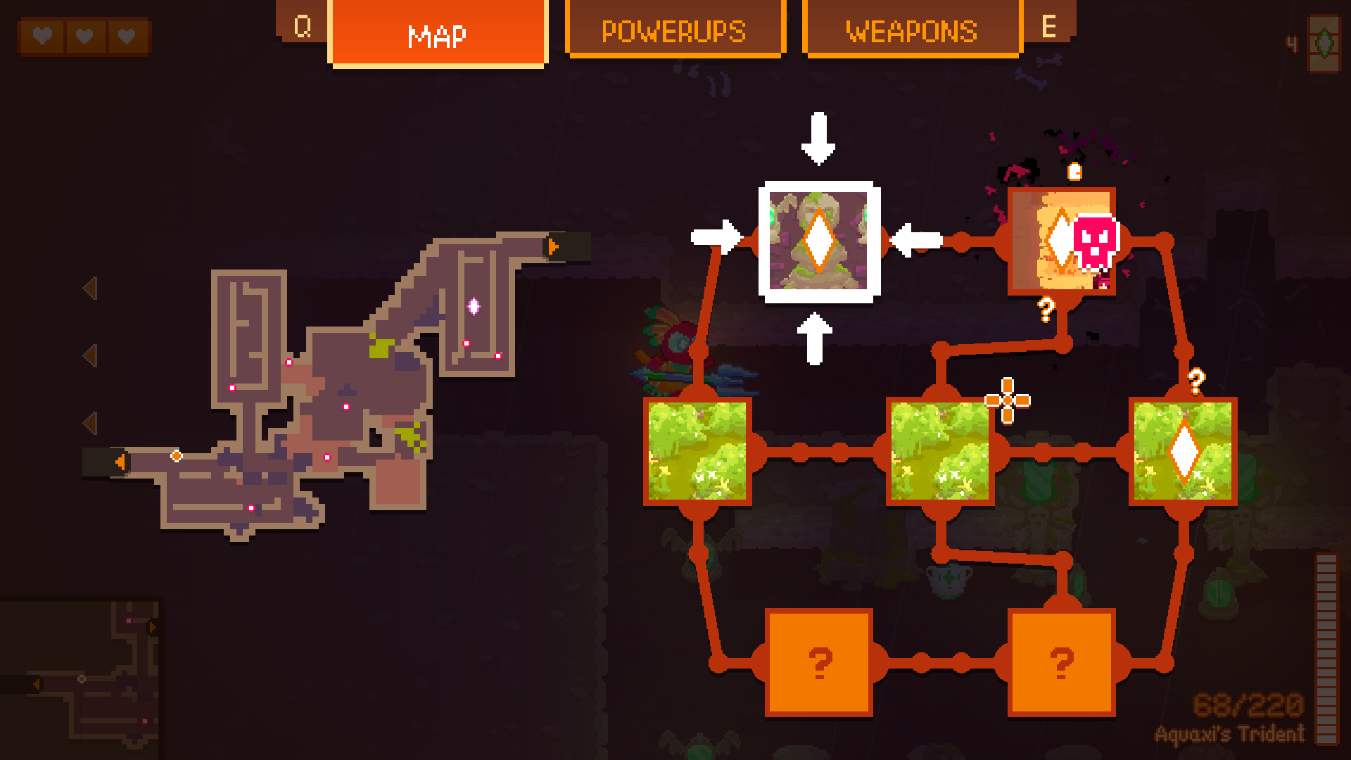 Each level is made up of a hex of zones, each of which are basically mazes filled to the gills with incredibly angry enemies. The mix of aggro rush down mobs, long range shooters, and random environmental hazards can create a truly anxious experience. But since clearing them isn’t a priority, you spend a lot of time just running away from them. There are shops and chests and even little mini dungeons that you can risk your neck for, and it’s always worth at least a bit of sidetracking for.